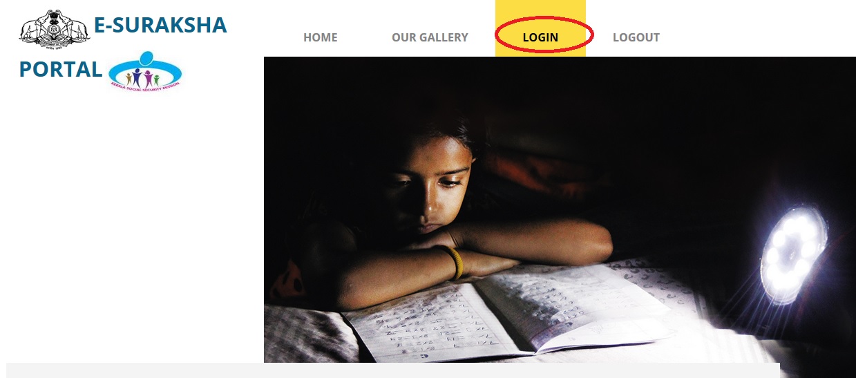 Go to the official website of Kerala Social Security Mission through the URL http://kssm.ikm.in/startlogin.htm