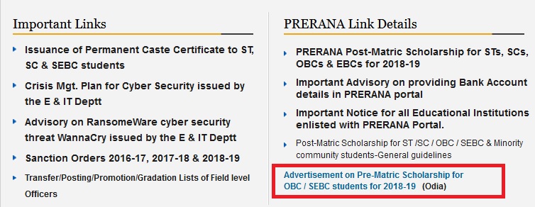 stscodisha.gov.in 2017-18 Pre Matric Scholarship Fresh & Renewal : Odisha ST & SC Development