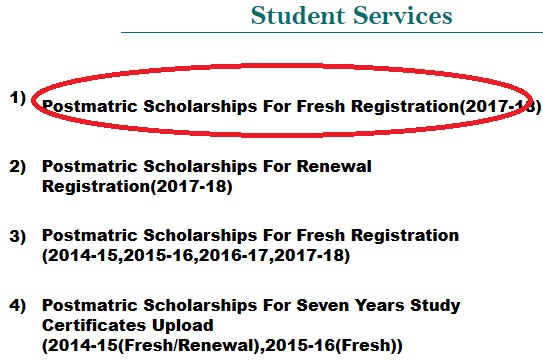 Scholarship Name : PMS Post Matric Scholarships 2017-18 Fresh Registration