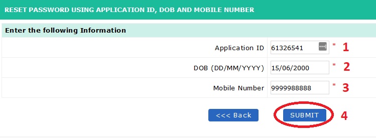 ** Reset Password by Himself / Herself Using Application ID, DOB and Mobile Number.