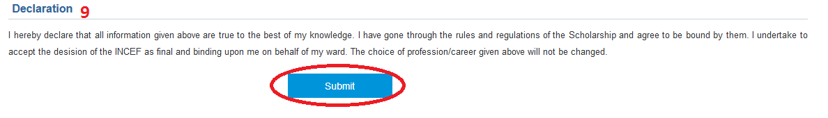 Step-9 : Click on the “Submit” button to complete the online registration.