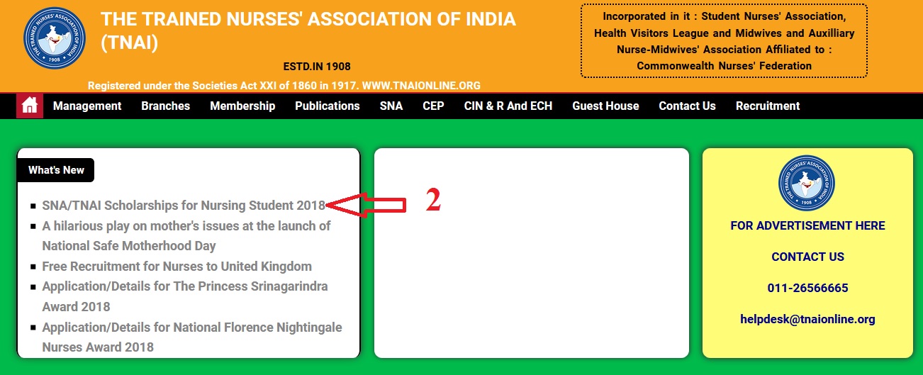 Step-2: Then go to the ‘SNA/TNAI Scholarships for Nursing Student 2018’ PDF link under ‘What’s New’ section.