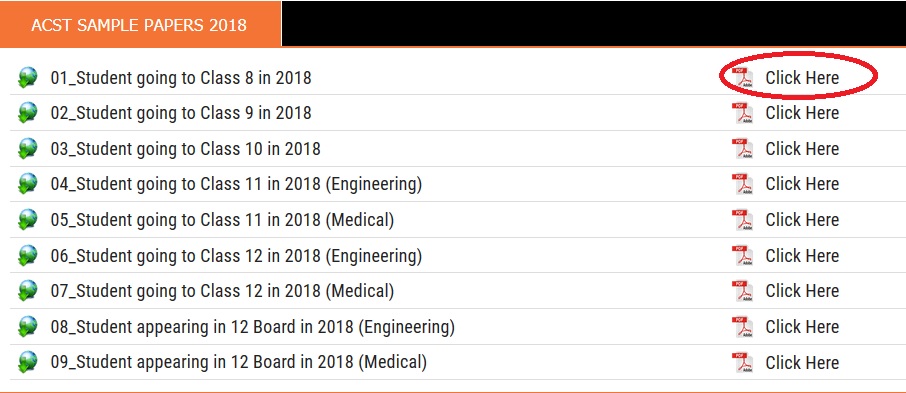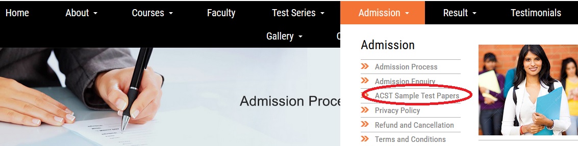2. Then Click the Admission tab in the Menu bar and Select ACST Sample Test Paper