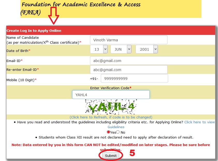 Step-5 : Fill all the fields in the online registration form and Click on the ‘Submit’ button.