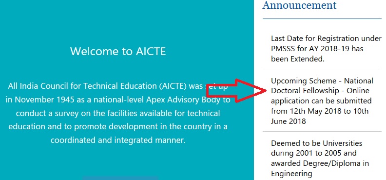 Step 2 : Then Click on the National Doctoral Fellowship Scheme under the ‘Announcement’ tab.