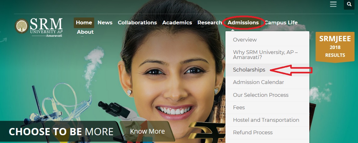 To apply for the SRM University Socio Economic Scholarships 2018 just follow the below steps.