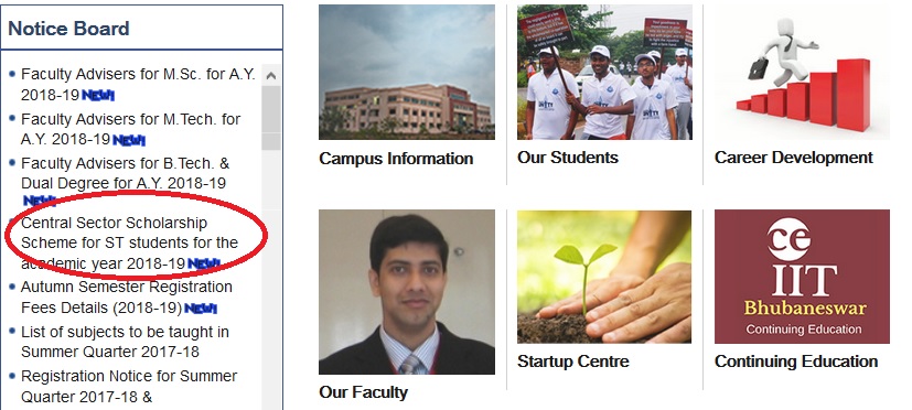IITBBS Central Sector Scholarship Scheme for ST Students Fresh/Renewal 2018-19 : Indian Institute of Technology Bhubaneswar