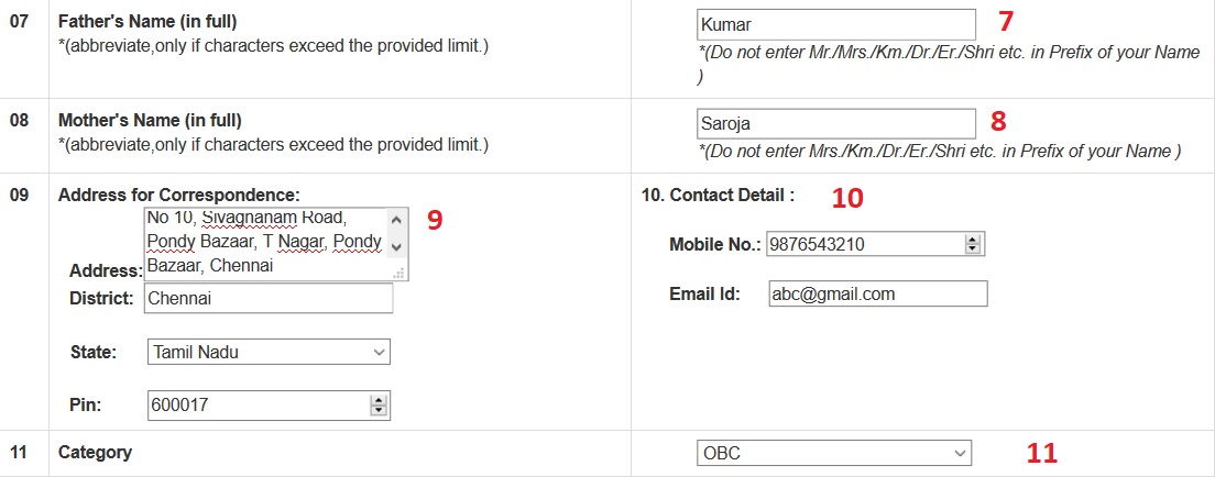 ** Enter your Father’s Name (in full) [Kumar]