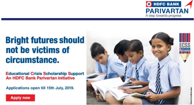 HDFC Bank invites applications for ECSS Educational Crisis Scholarship Support for the year 2019-20.