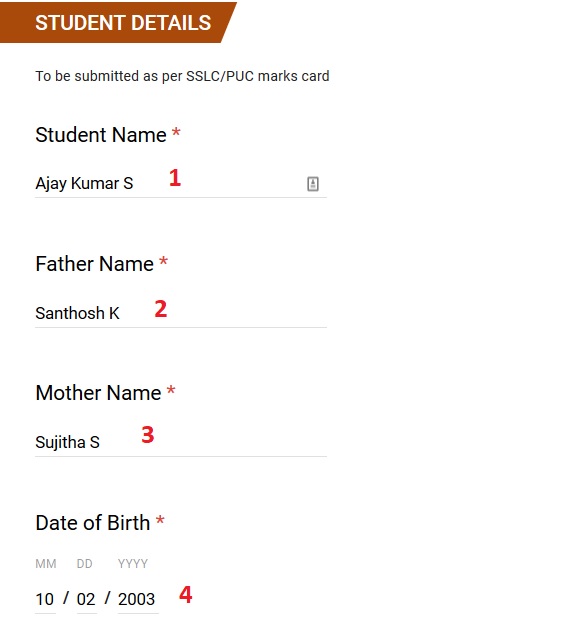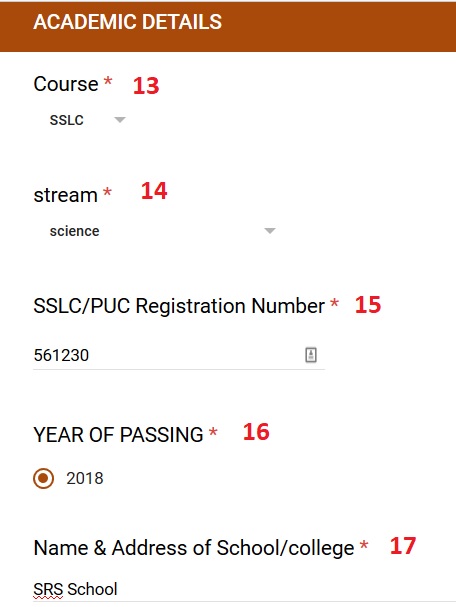 3) Student should have passed SSLC with 95% & above Score or 2nd PUC with 90% & above score in examination conducted by Karnataka Secondary Education Examination Board or Department of Pre-University Education,Government of Karnataka respectively during the academic year 2017-18.