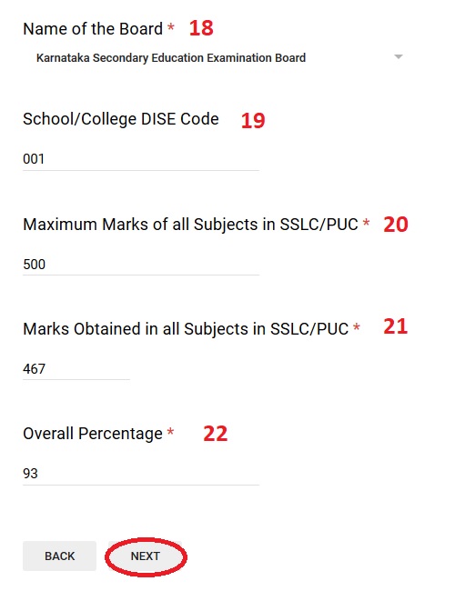** Enter Marks Obtained in all Subjects in SSLC/PUC [467]
