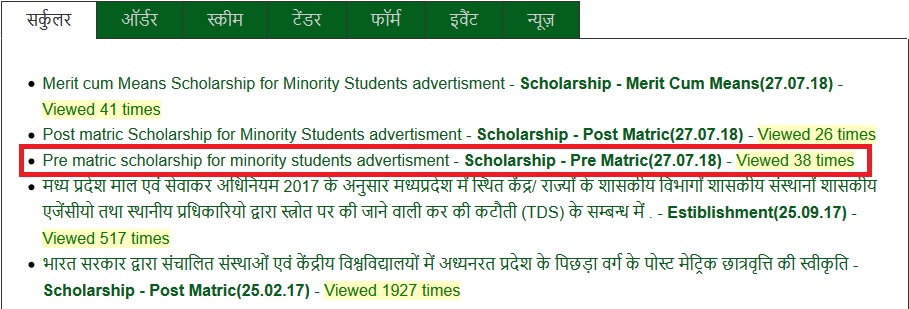 Scholarship Name : Pre-Matric Scholarship 2018-19