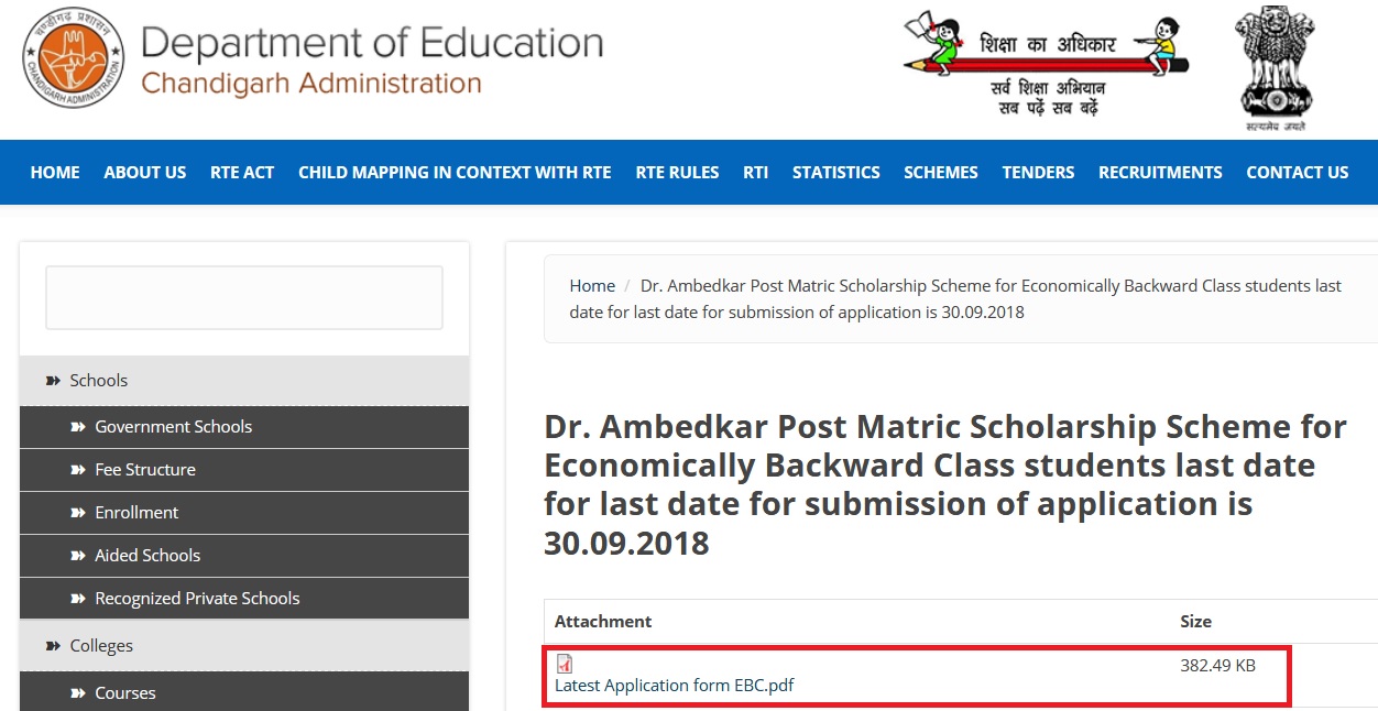 chdeducation.gov.in Dr. Ambedkar Post Matric Scholarship For EBC Students 2018-19 : Chandigarh Education