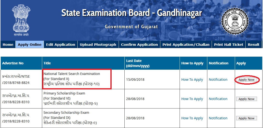 Gujarat SEB State Examination Board invites applications for NTSE National Talent Search Exam for the year 2018-19.