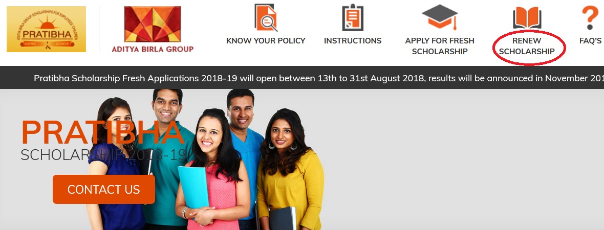Aditya Birla Group Pratibha Scholarship Renewal 2018-19 : poornataghr.com
