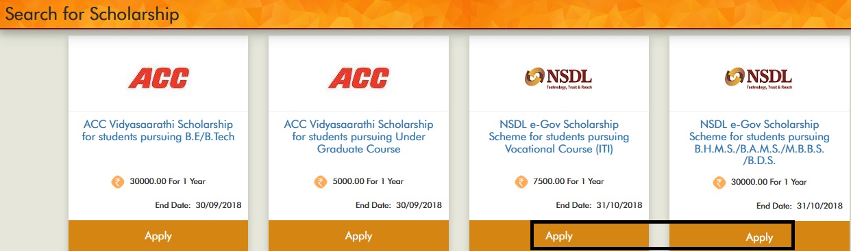 Search for relevant ‘NSDL e-Gov Scholarship’ schemes in which you are eligible and apply for scholarship.