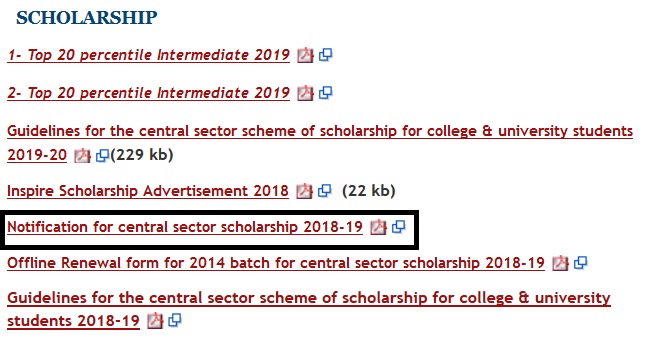 Students just follow the below steps to apply for the Central Sector Scholarship Scheme Fresh & Renewal 2019-20.