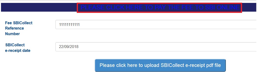 The fee of Rs.1000 can be paid to State Bank of India (SBI) online. PLEASE SELECT THE “PMRF APPLICATION FEE 2018” OPTION IN THE DROP DOWN MENU. You will need the SBICollect e-receipt pdf file and the SBICollect Reference Number to fill in the fee payment details.