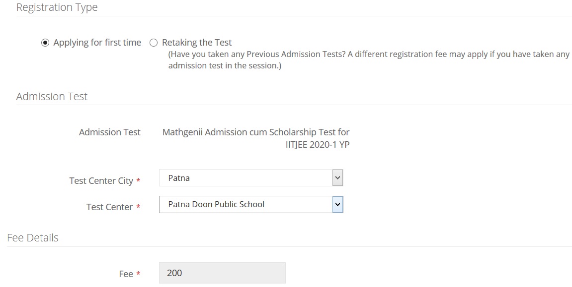 Please remember to mention your Name and address where you want the Admission Test Registration form to be sent along with the draft.