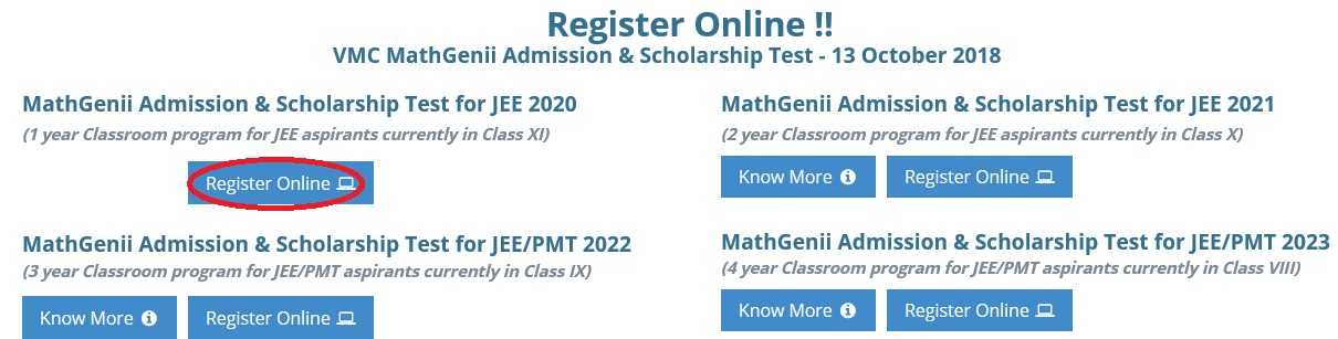 Step 2 : You can register online for the VMC admission test by clicking on the online registration buttons
