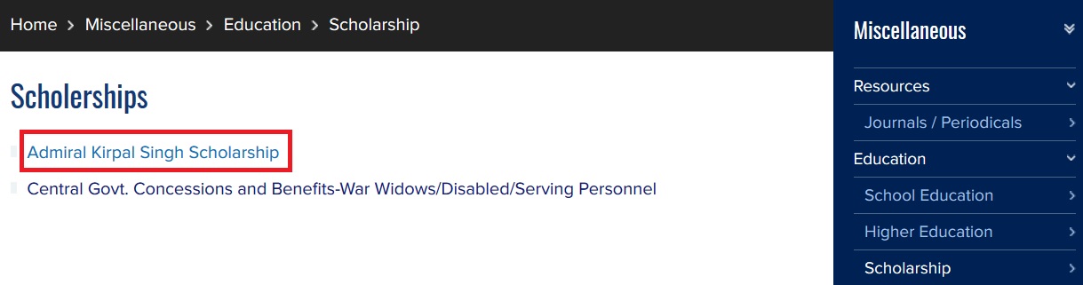Just follow the below steps to apply for the Admiral Kirpal Singh Scholarship Scheme.