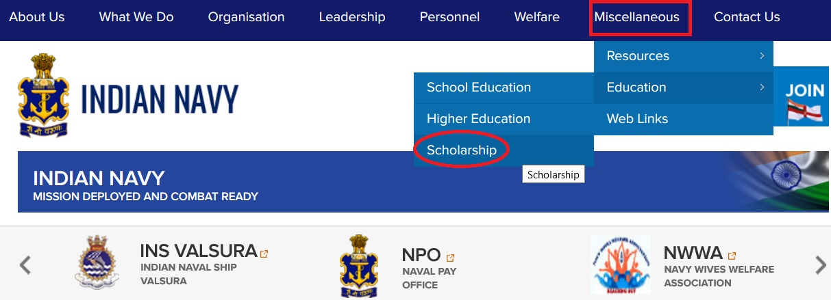 indiannavy.nic.in Admiral Kirpal Singh Scholarship Scheme : Indian Navy