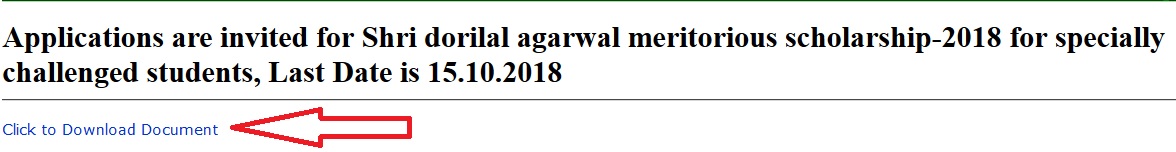 Scholarship Name : Shri Dorilal Agarwal Meritorious Scholarship 2018