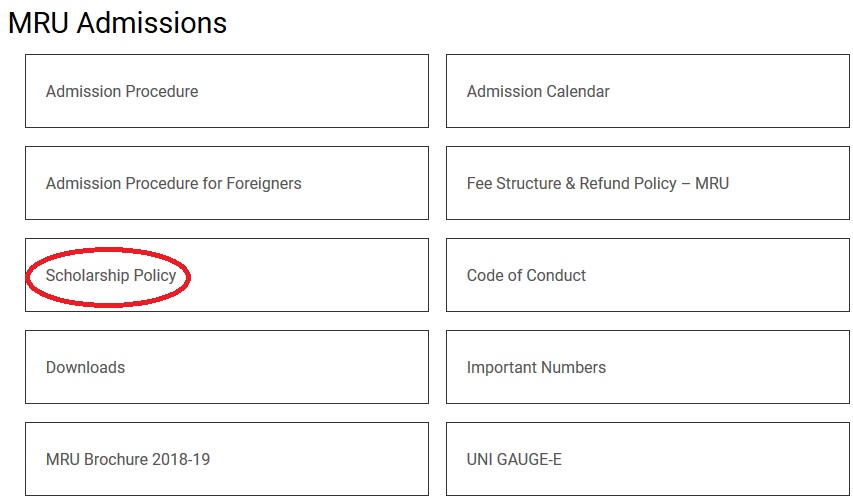 Scholarship Name : MRU 2018-19 Scholarship/ Freeship Policy