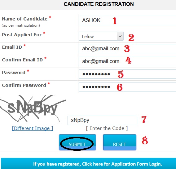 Step 3 : Fill the Registration Form with the required details and click on “Submit” button