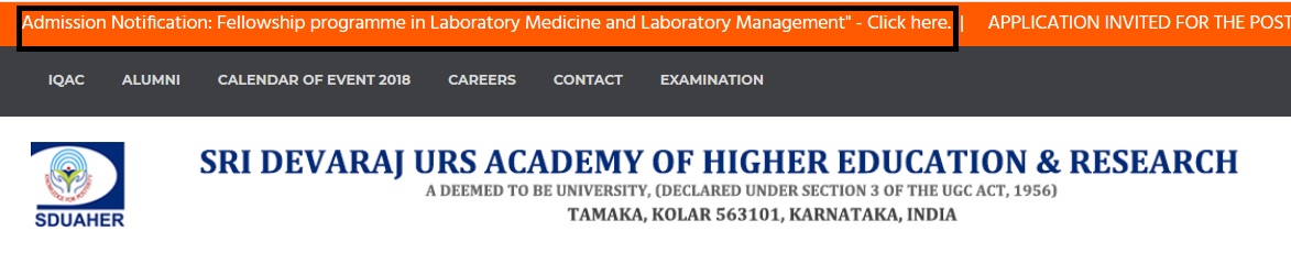 Sri Devaraj URS Academy Of Higher Education & Research invites applications for Fellowship Program In Laboratory Medicine & Management for the year 2018-19.