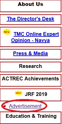 Tata Memorial Centre ACTREC invites applications for JRF (Junior Research Fellowship) for the year 2019.