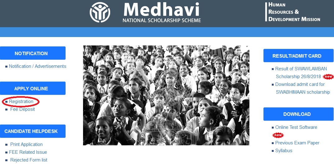 Human Resources & Development Mission through MEDHAVI national scholarship scheme Invites ONLINE APPLICATION for SWAWLAMBAN-II scholarship examination – 2018