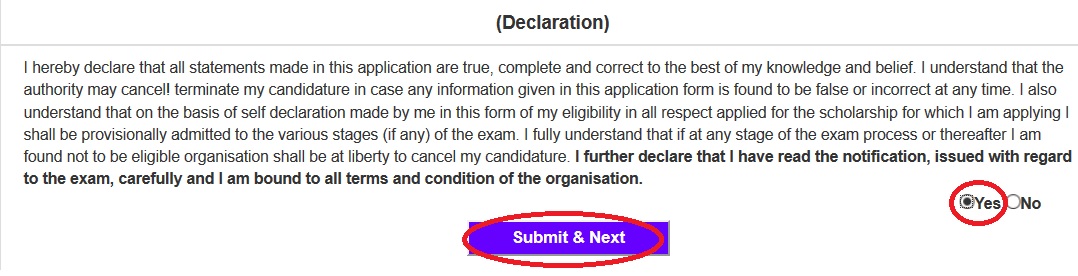 Step 3 : Finally accept the declarations and Click on the Submit button. A registration ID will be sent to the E‐mail of the candidate.