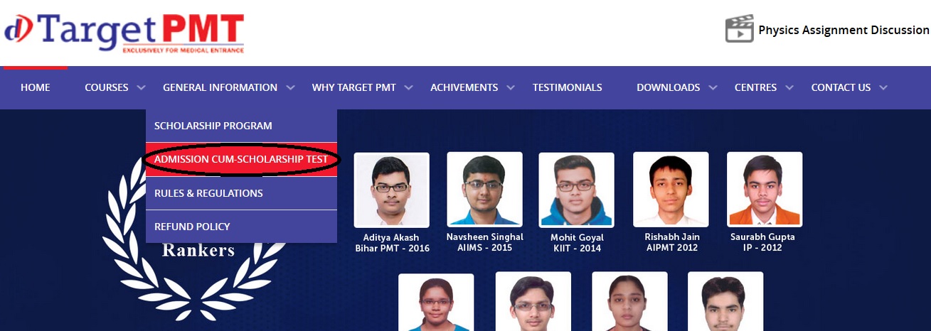 The Admission-Cum-Scholarship Test fee is Rs. 500/- non-refundable. This amount can be paid by Cash/DD in favour of DD Target PMT Pvt. Ltd. payable at New Delhi. Scholarship test fee will be adjusted if the student enrolls himself/herself in the institute.