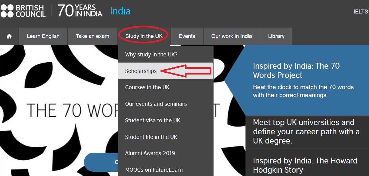 British Council 70th Year Scholarship 2019-20 : britishcouncil.in
