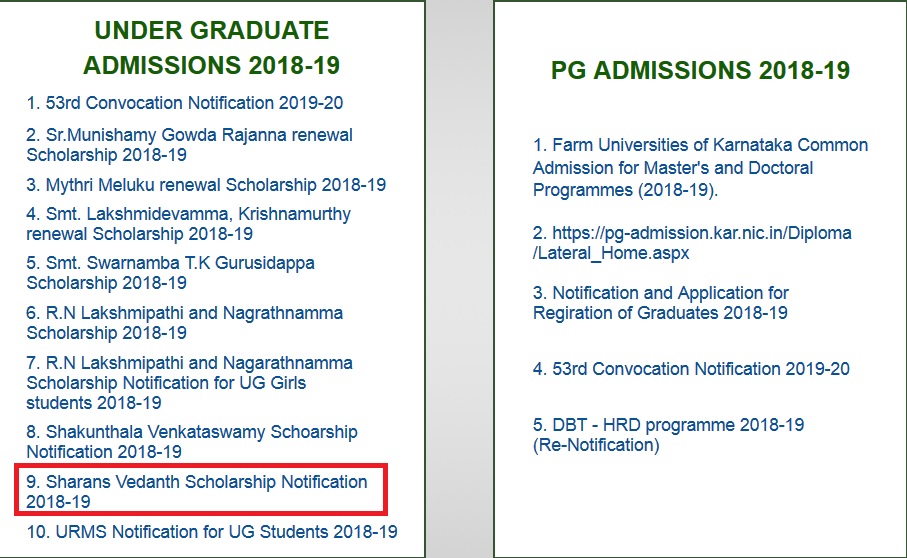 UAS Bangalore Shakunthala Venkataswamy Scholarship 2018-19 : www.scholarships.net.in/32083.htmlUAS Bangalore R.N Lakshmipathi & Nagrathnamma Scholarship 2018-19 : www.scholarships.net.in/32095.html