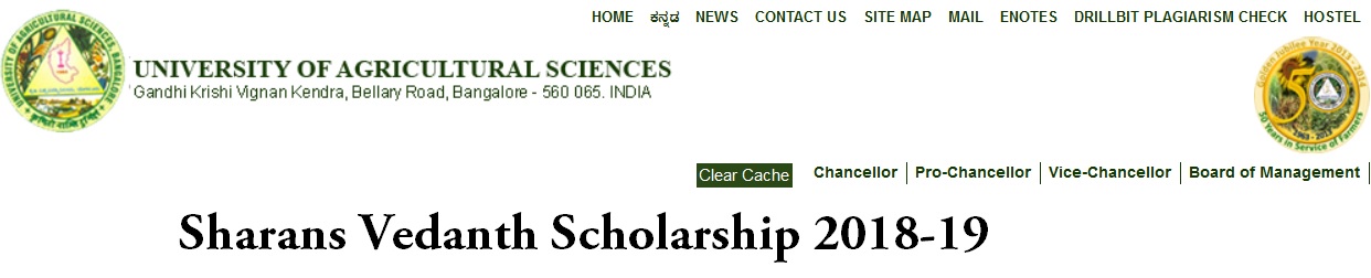 UAS Bangalore Sharans Vedanth Scholarship 2018-19 : University of Agricultural Sciences