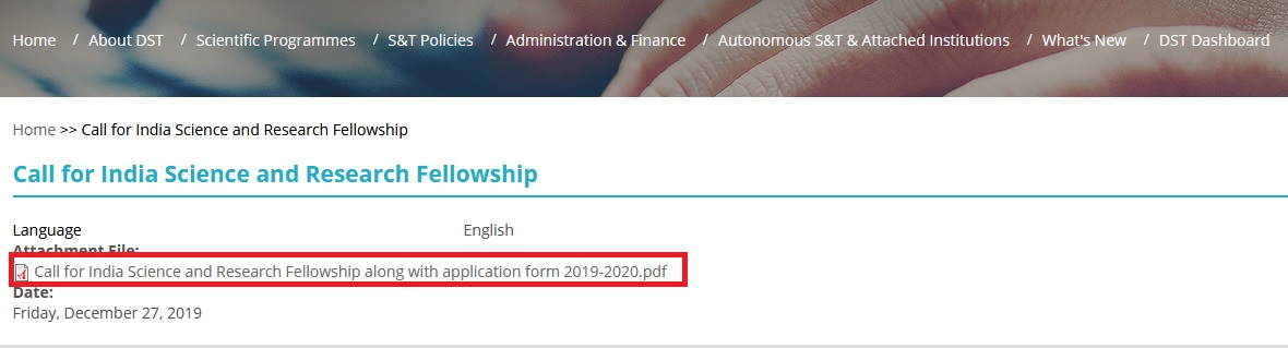 Website : https://dst.gov.in/news/call-india-science-and-research-fellowship