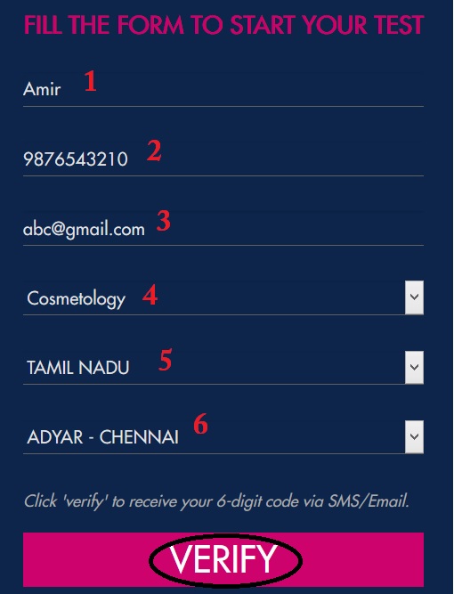 Step 2 : Take the test to measure your Glamour Quotient. Fill the form to start your test