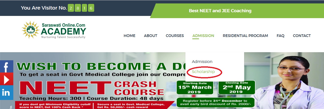 Scholarship Name : SAST 2019-20 Saraswati Academy Scholarship Test