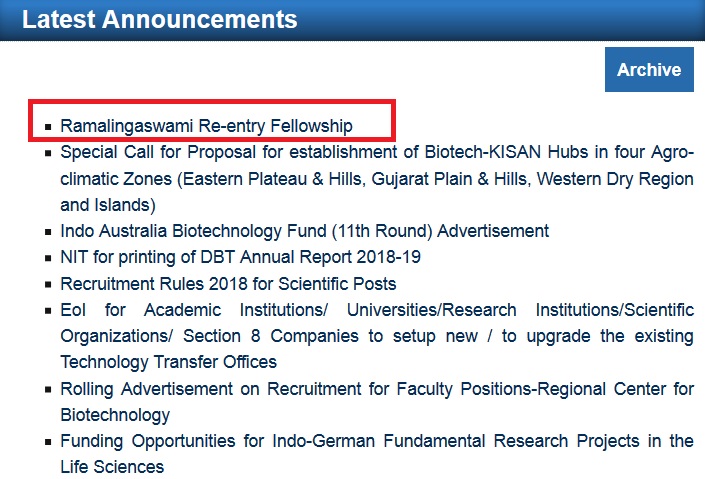Just follow the below steps to apply for the Ramalingaswami Re-Entry Fellowship 2018-19.