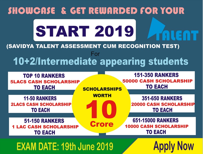 Scholarship Name : START 2019 SAVIDYA Talent Assessment Cum Recognition Test