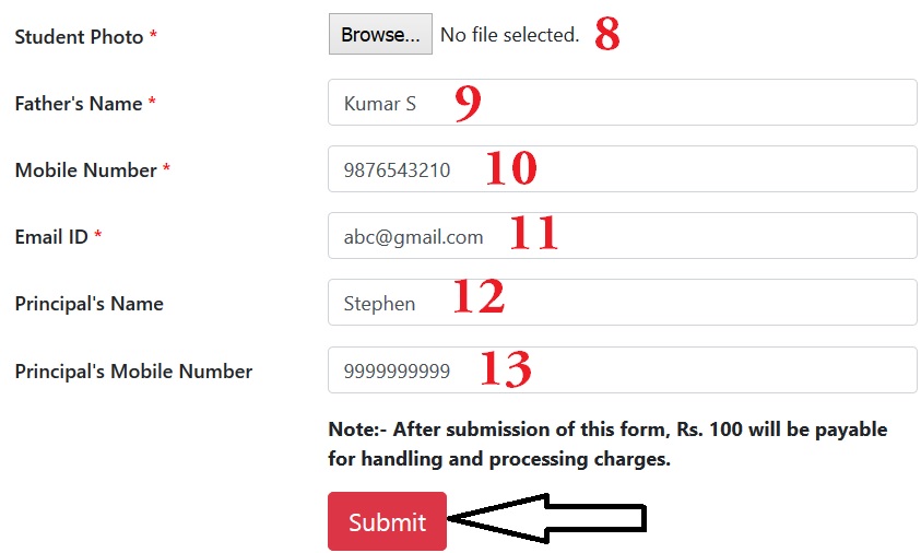Step 3 : After submission of this form, Rs. 100 will be payable for handling and processing charges.