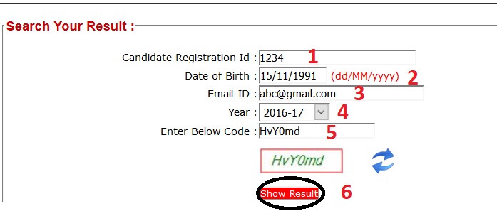 Step 1 : Enter your Candidate Registration Id [Eg. 1234]