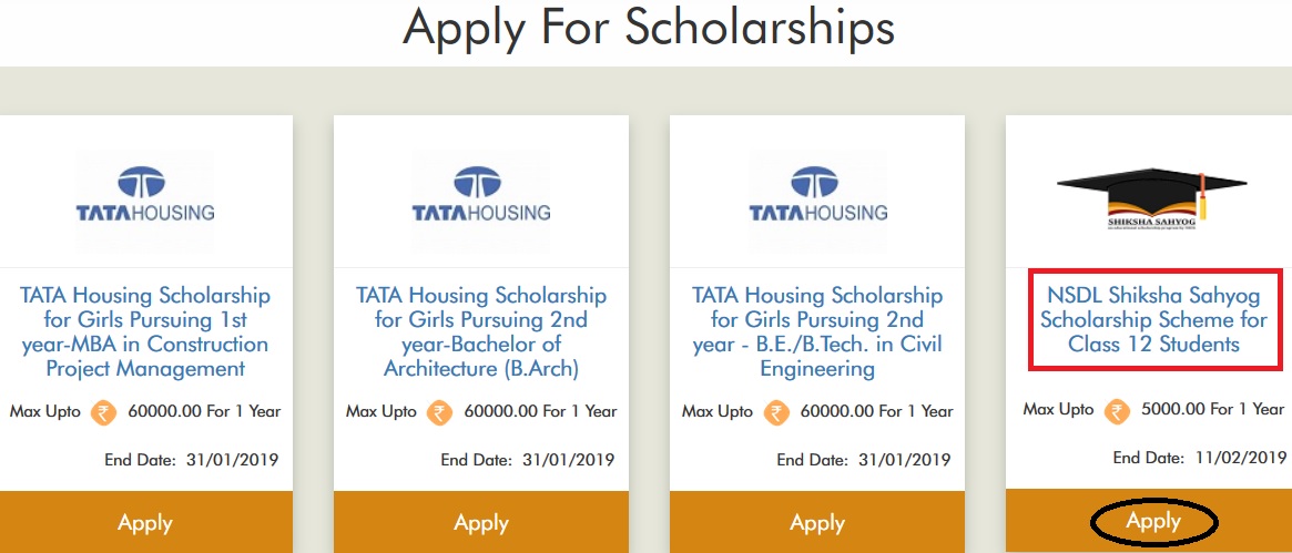 Search for relevant ‘NSDL Shiksha Sahyog Scholarship Scheme For Class 12 Students’ schemes in which you are eligible and apply for scholarship.