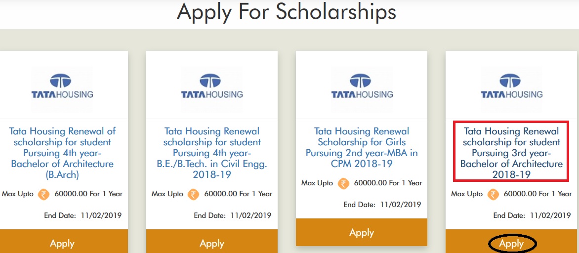 Just follow the below steps to apply for the TATA Housing Scholarship Renewal For 3rd Year B.Arch Students 2019.