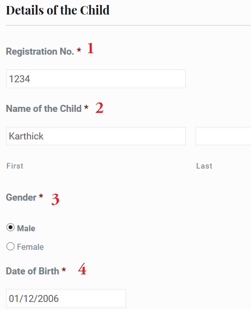 ** Enter the Name of the Child* [Karthick]
