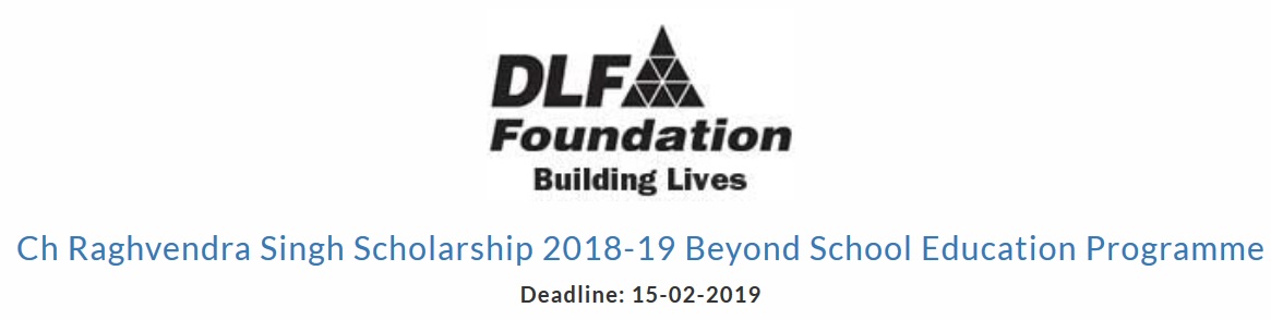 DLF Foundation invites applications from students looking to pursue graduation, post-graduation, skill-training or vocational courses, for the Ch Raghvendra Singh Scholarship 2018-19 Beyond School Education Programme.