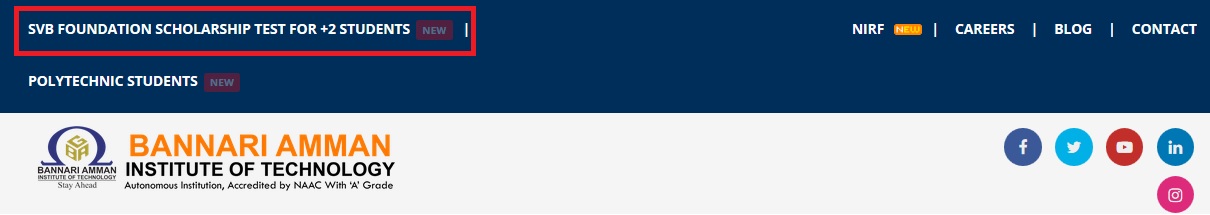 SVB Foundation offers 100% scholarship on College fees for top 25 students in SCHOLARSHIP TEST and selecting any Branch of Engineering / Technology in Bannari Amman Institute of Technology (BIT) through single window system.