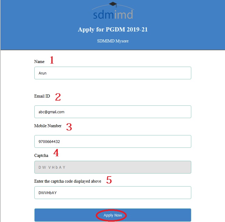 Step 6 : After applying for SDMIMD PGDM 2019-21, they may send details of their entrance exam registration by Email to admission [AT] sdmimd.ac.in, duly mentioning their Name & SDMIMD Application Number